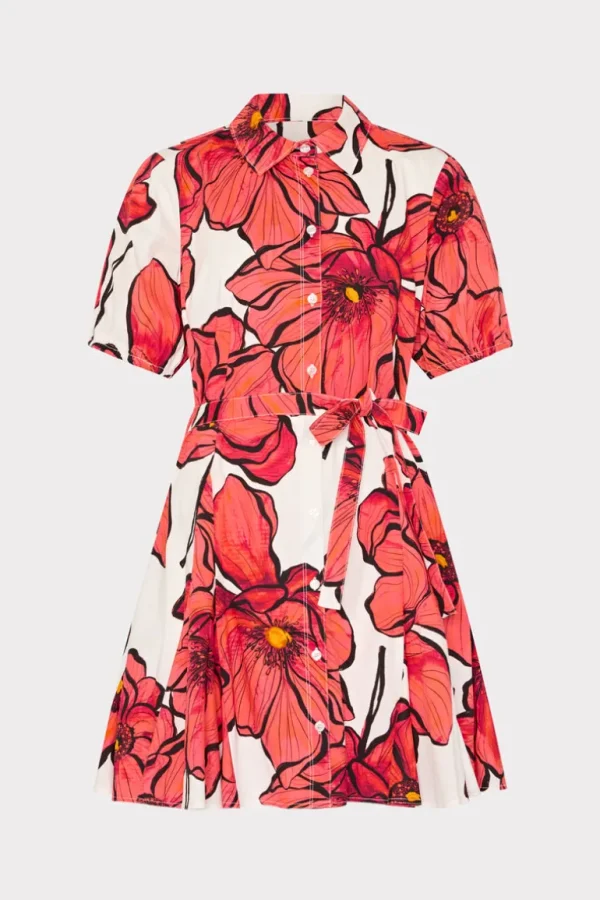 Fashion MILLY Juni Windflower Pastel Poplin Mini Dress Coral Multi