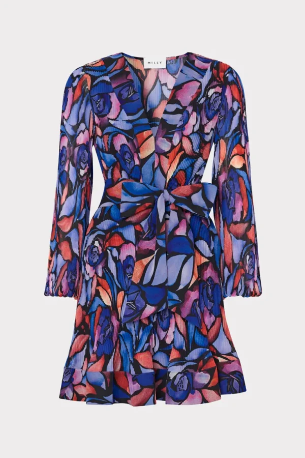 Outlet MILLY Liv Dream Rose Pleated Dress Dream Rose Blue