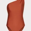 Cut from metallic chevron print swim fabric that’s made in Spain, the Ana Barcelona one-piece has a plunging neckline with exaggerated straps. Wear yours poolside on your next luxury getaway.