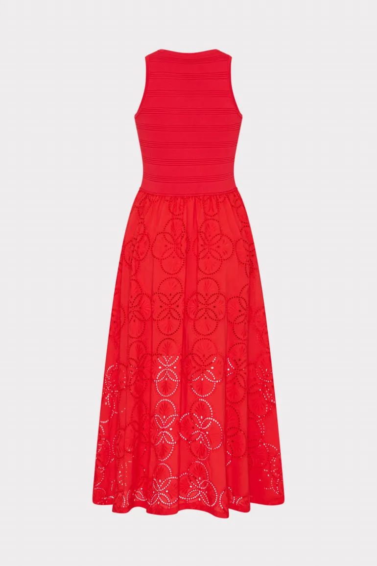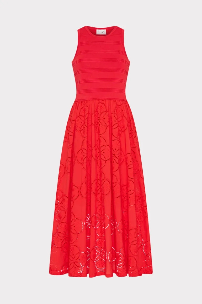 This ultra-flattering dress is made with a form fitting ribbed knit bodice and an attached cotton eyelet skirt that’s lined to the mid-thigh. Style yours with chunky heels and jewelry. It’s the perfect seasonal transition dress from winter to spring.