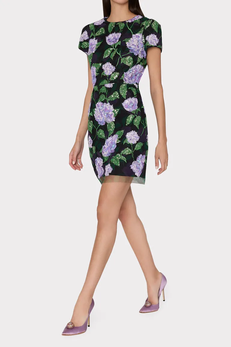 A floral sequin design is embroidered atop mesh throughout this stunning short sleeved minidress with a scalloped hem—a standout piece in our Fall collection. Every time you wear it you’ll feel special, without sacrificing comfort.