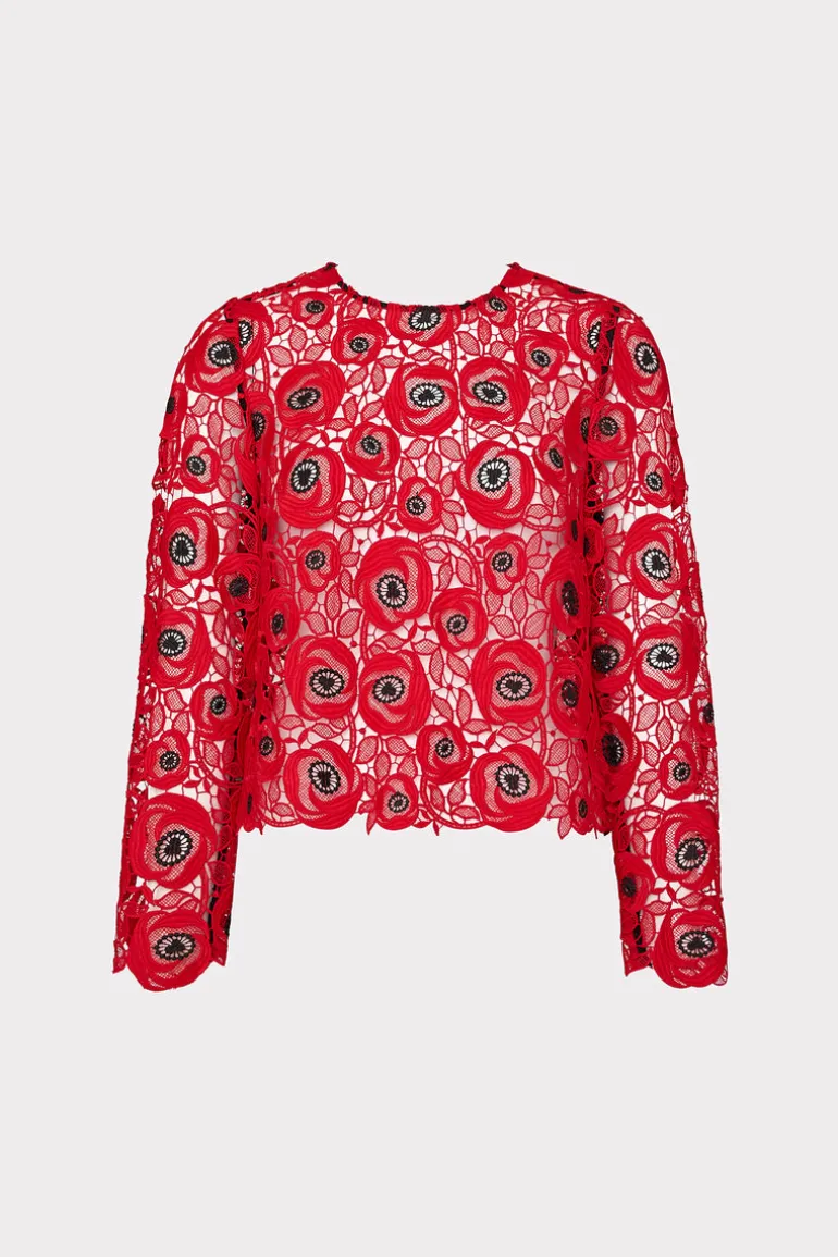 The Nori is an incredibly chic cropped top that’s embroidered with our signature bold, floral lace overlay. For the full look, wear it with its coordinating Embroidered Lace Modern Mini Skirt.