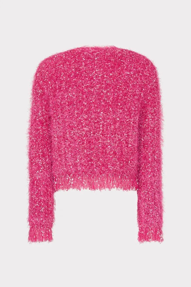 Look no further for this season’s statement sweater. This fabulous cardigan was crafted from one of our most unique and luxe knit yarns mixing all of our favorite details – from eyelash fringe to textured twirls, and a touch of soft shimmer. Wear with a sequin skirt for a festive holiday ‘fit or dress up our classic trousers for a fun fall twist.